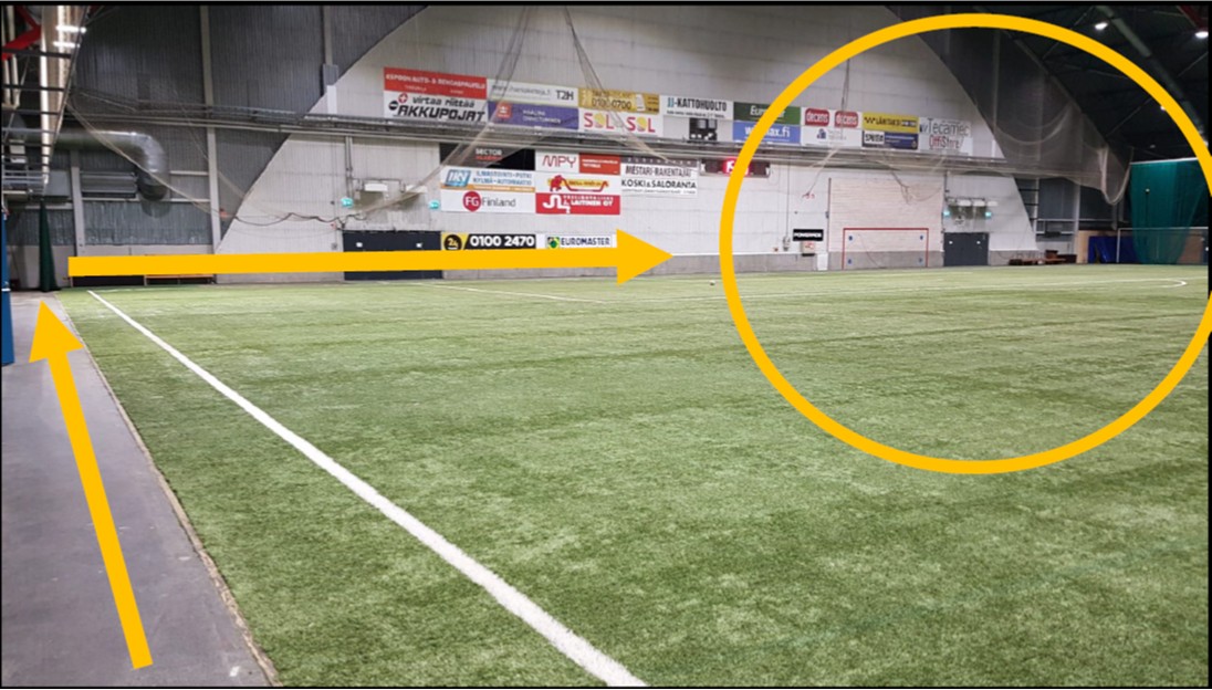 Urheilijat voivat tulla odottamaan hallin sisätiloihin ja saapua sisäänkäynnistä katsottuna jalkapallokentän vasempaan päätyyn kuvan mukaisesti. Sieltä ohjaajat neuvovat omaan ryhmään