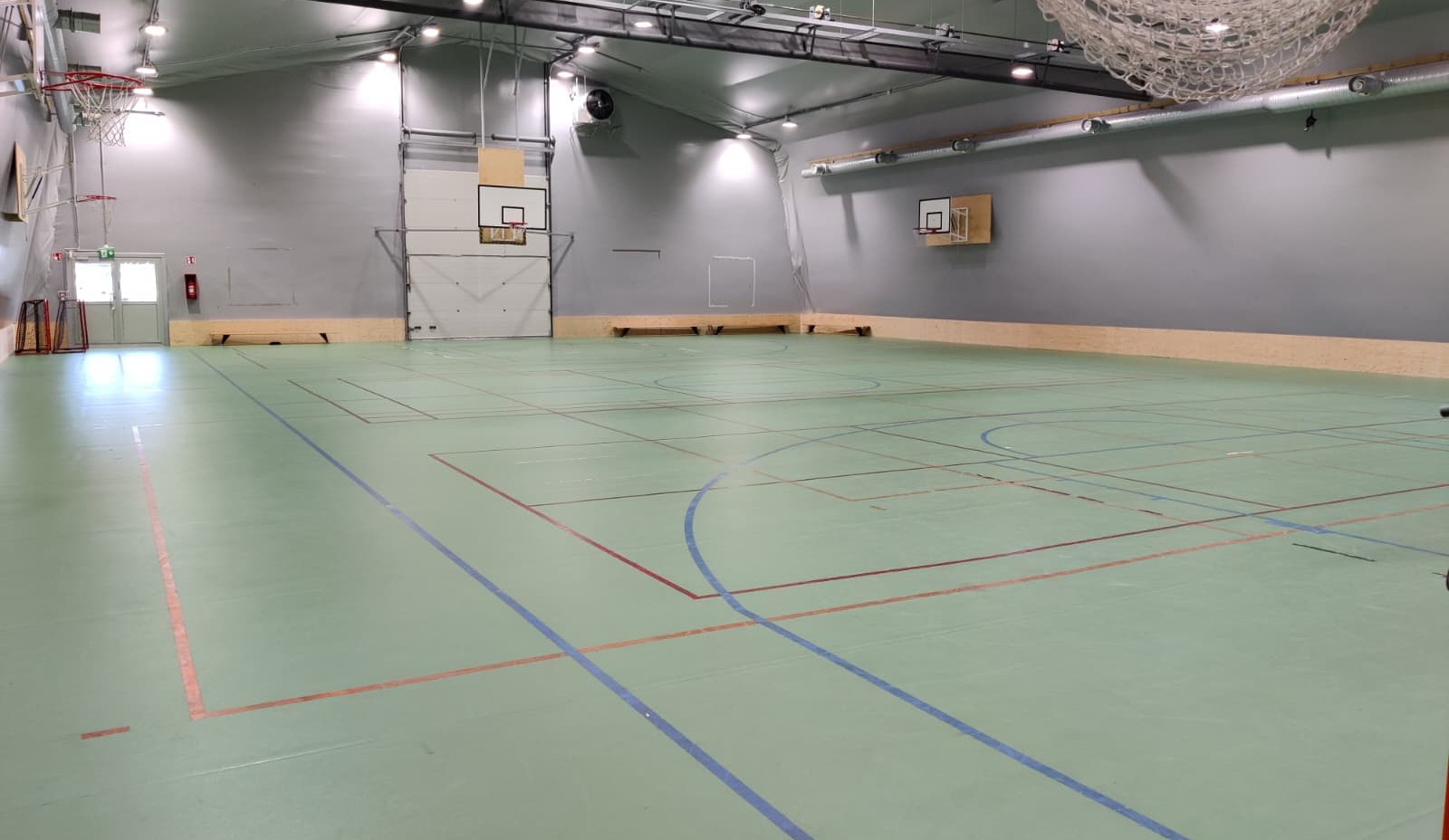Liikuntasali on 455 m² ja se on jaettavissa väliverholla kahteen osaan. Lattiamateriaalina on puu. Salin pituus on 26,5 m, leveys 17,2 m ja korkeus 7 m. Tilassa saa olla samaan aikaan enintään 420 henkilöä. Liikuntasalissa voi yöpyä enintään 75 henkilöä.